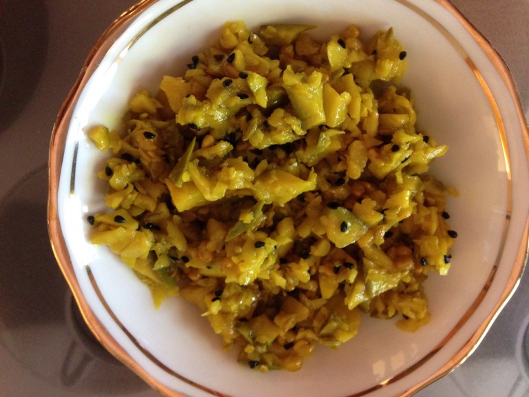 Mango is a summer fruit, it is eaten in ripe form, but you can make pickle of raw mango. When I was growing up in India, in the summer we would make a big batch of mango pickle for the whole year. After coming to USA, I used to miss this pickle. I used to get this pickle from my mom for many years. Now we get mango in so many varieties it has become so easy to make this pickle here! This pickle is made with a raw green mango, one big mango will yield you a big jar to last couple of months. We get mango all year around now, but summer mangoes are juicer, so it is good to make in summer to last for winter.