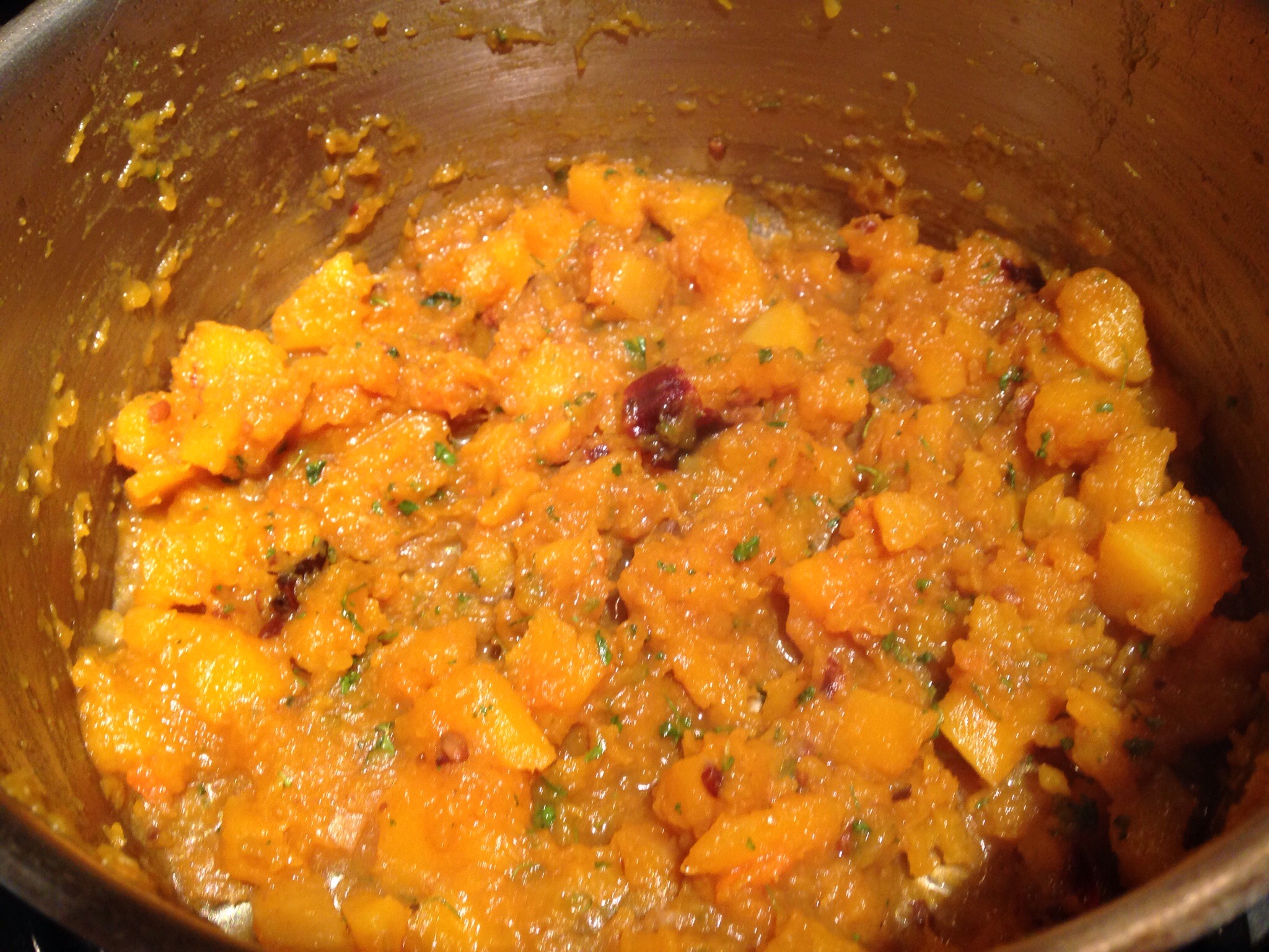 I can not believe New Year is one week old already. This year has started with good company, good food and lots of love from every where. Winter seems very mild so far, going for walk everyday keeping up with my routine of yoga. Have not posted any recipie for quite some time, made this sabji, it is a favorite of my family. Easy to make with very little spices, mainly asfotedita (heeng) and dried red chilies. This goes very well with poori and potato curry. I make it sweet and sour. It is hard to peel squash, these days you can buy pre cut so that makes it easy to make this wonderful sabji.
